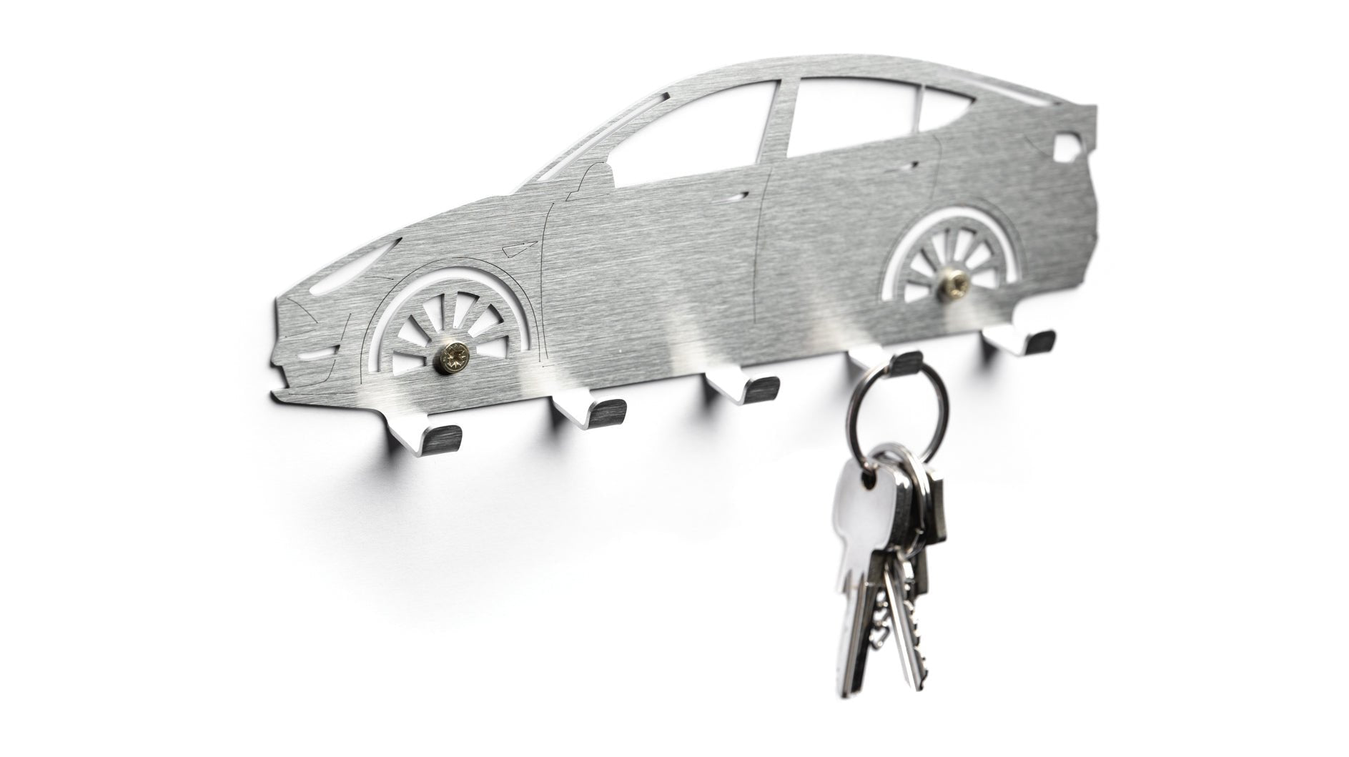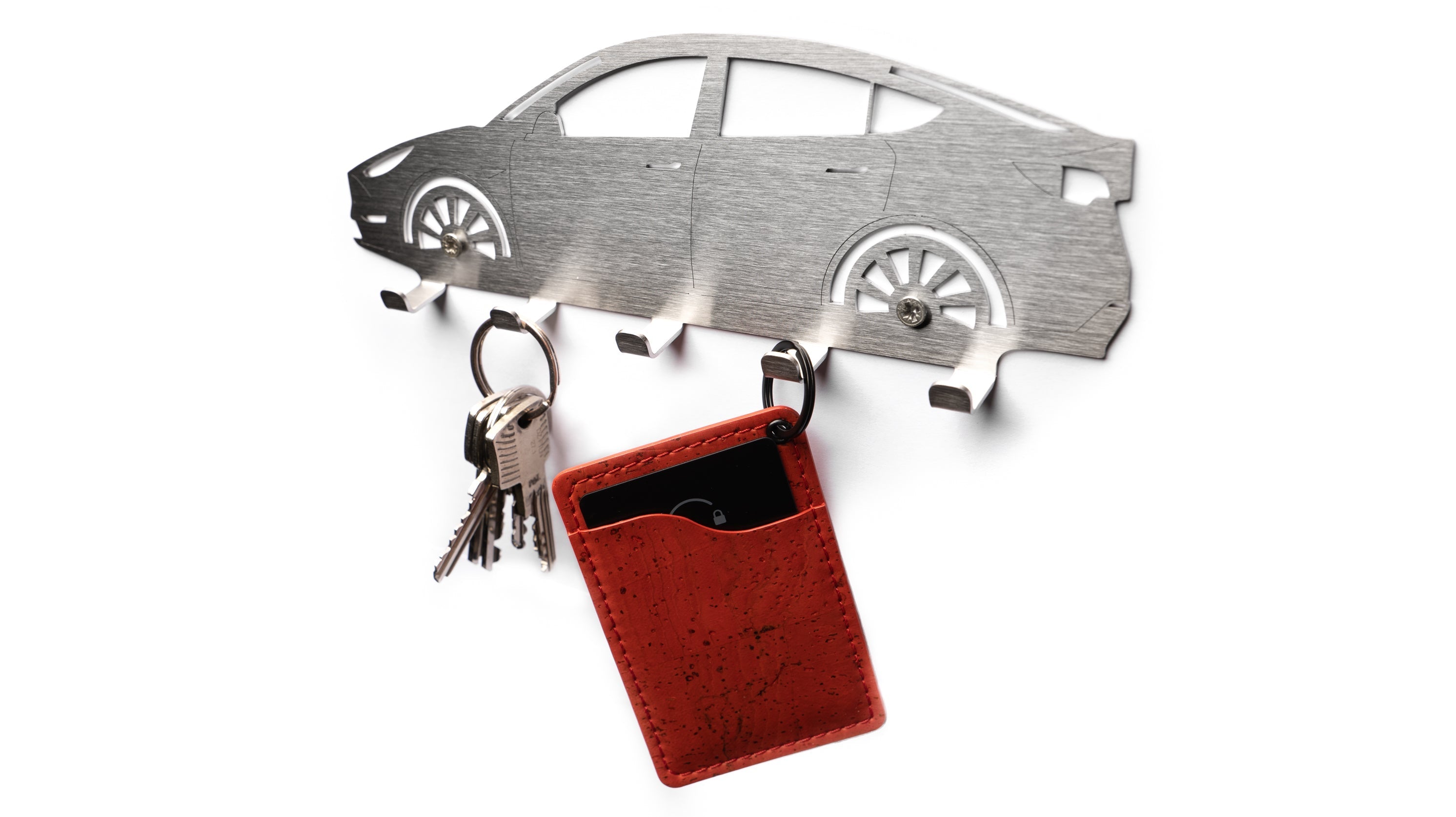 Dieses Edelstahl Schlüsselboard im originalgetreuen Design eines Tesla Model Y ist ein echter Eyecatcher. Es bietet 5 Haken für Schlüssel und andere kleine Dinge. Die Gesamtlänge beträgt ca. 25cm.