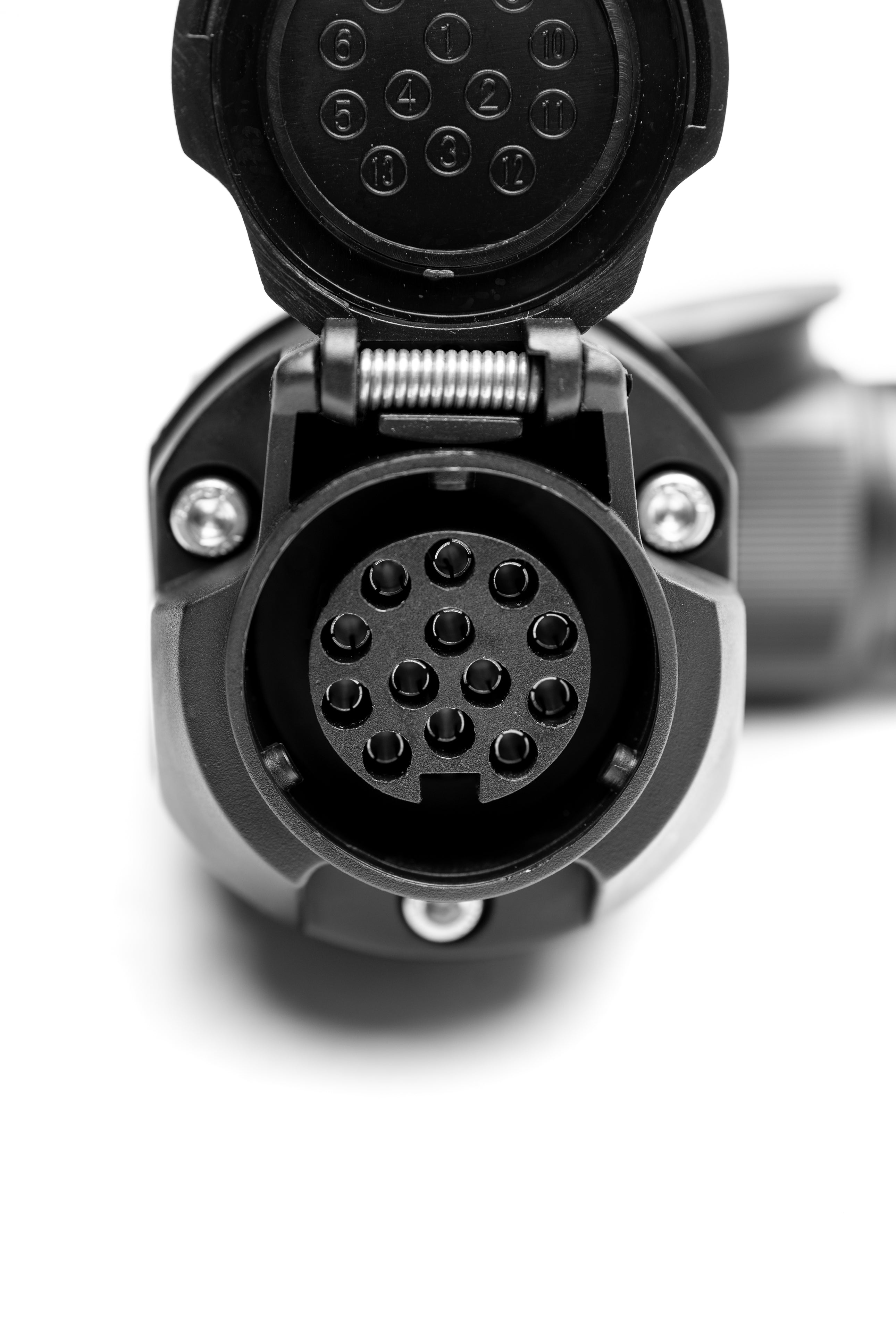 Standardmäßig ist beim Model 3 die 13-polige Buchse der Anhängerkupplung nach unten gerichtet, was bei eingestecktem Kabel die Bodenfreiheit stark einschränkt. Unser Winkeladapter sorgt dafür, dass das Kabel nach hinten herausragt und die Bodenfreiheit nahezu gleich bleibt. Wenn man zum Beispiel mit einem Fahrradträger rückwärts an den Supercharger heranfährt, schleift das Kabel sonst über die Bodenschwelle und wird auf Dauer beschädigt. Dasselbe passiert beim Fahren über Bodenschwellen oder auf unebenem Gelände.
