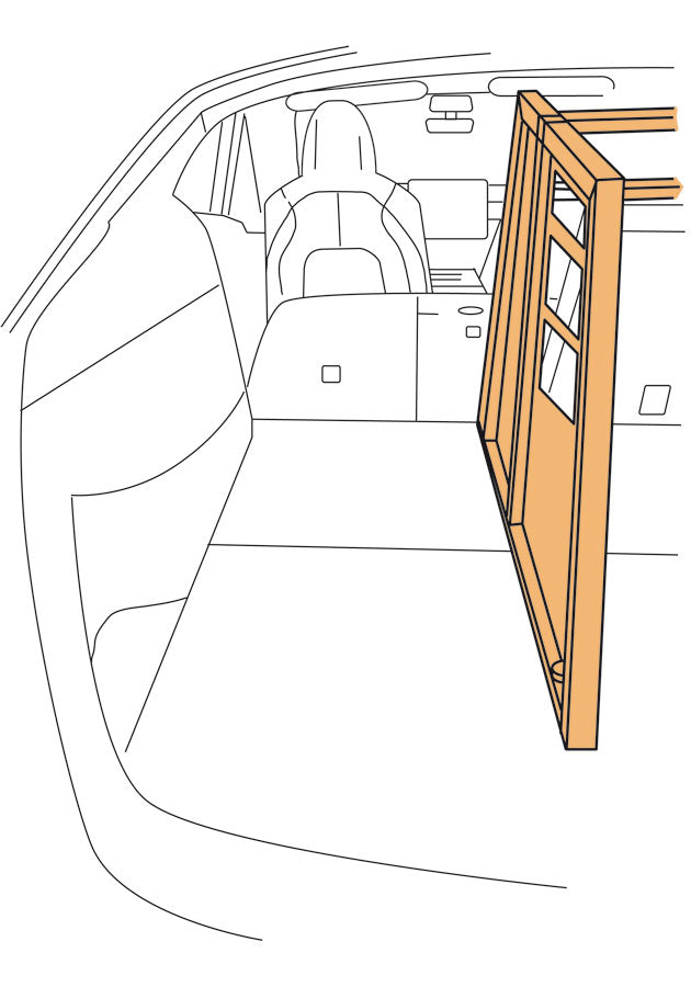 Ein klappbares System erlaubt es Ihnen, jederzeit auf den Sub-Trunk des Model Y zuzugreifen, ohne das Gitter zu entfernen oder zu demontieren. So bleibt Ihnen der wertvolle Stauraum von etwa 200 Litern erhalten. Darüber hinaus ermöglicht das GitterGewitter Hundegitter das Umklappen eines Teils der Rücksitzbank, sodass auch bei Beladung mit Hund an Bord das Durchladen langer Gegenstände möglich bleibt.