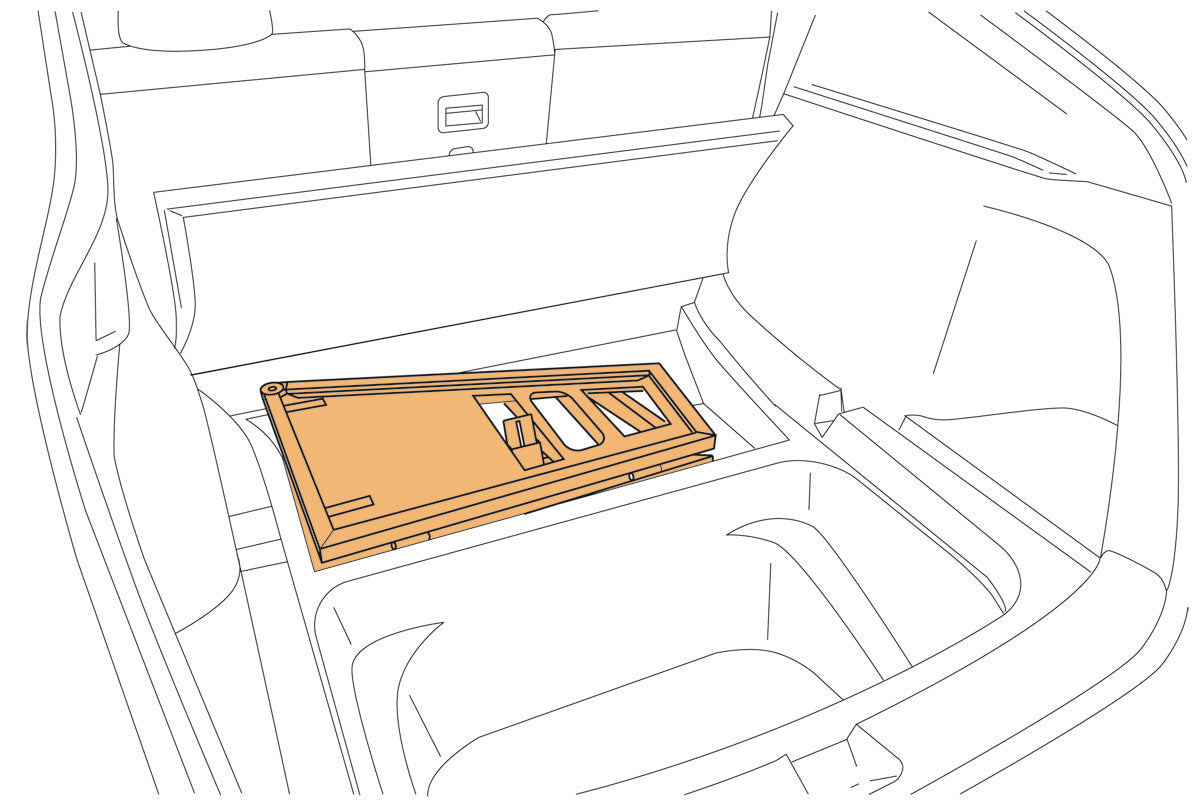 - Klappbares System ermöglicht Zugriff auf den Sub-Trunk ohne Demontage