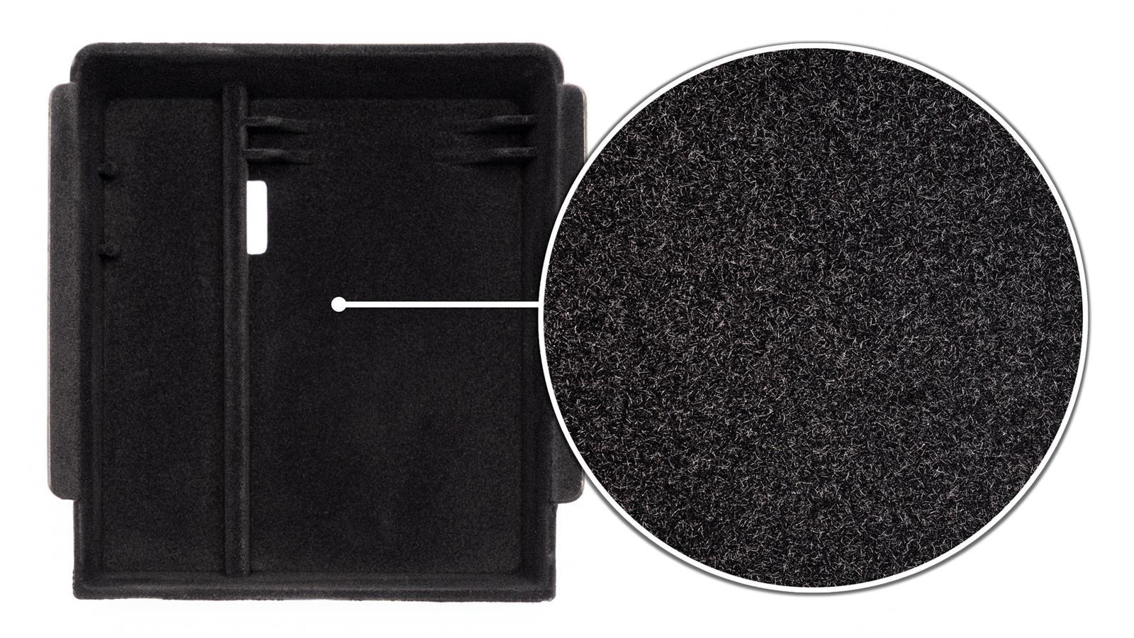 Die Organizer-Box ist mit weichem Velours ausgekleidet, sodass es bei der Fahrt nicht klappert und einen hochwertigen Eindruck hinterlässt. Kaum zu glauben, dass es sich hierbei um ein Zubehörteil handelt!