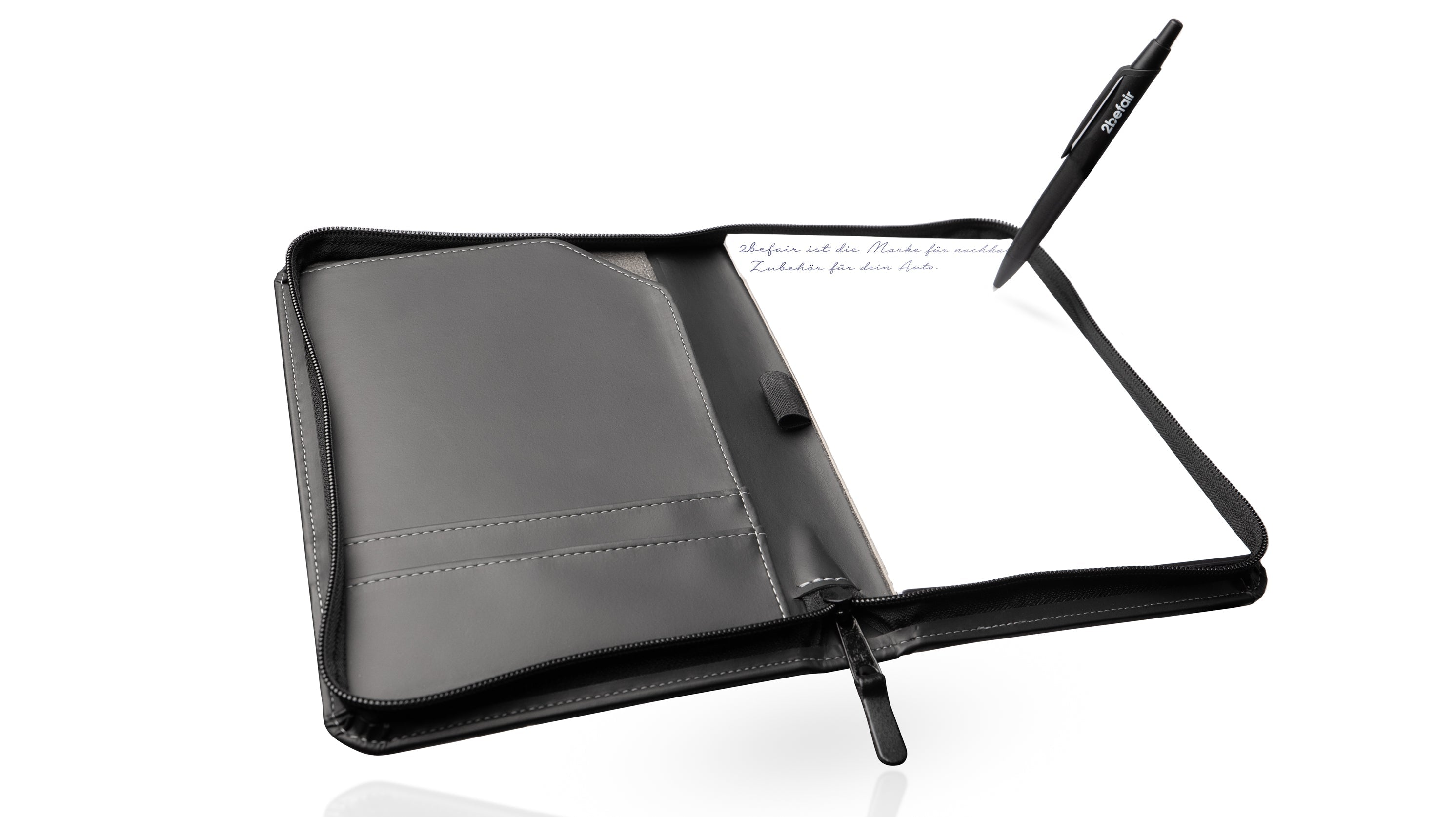 Praktisch zum Aufbewahren der Fahrzeugpapiere und erstellen von Notizen (zB Ladeinformationen, …).
