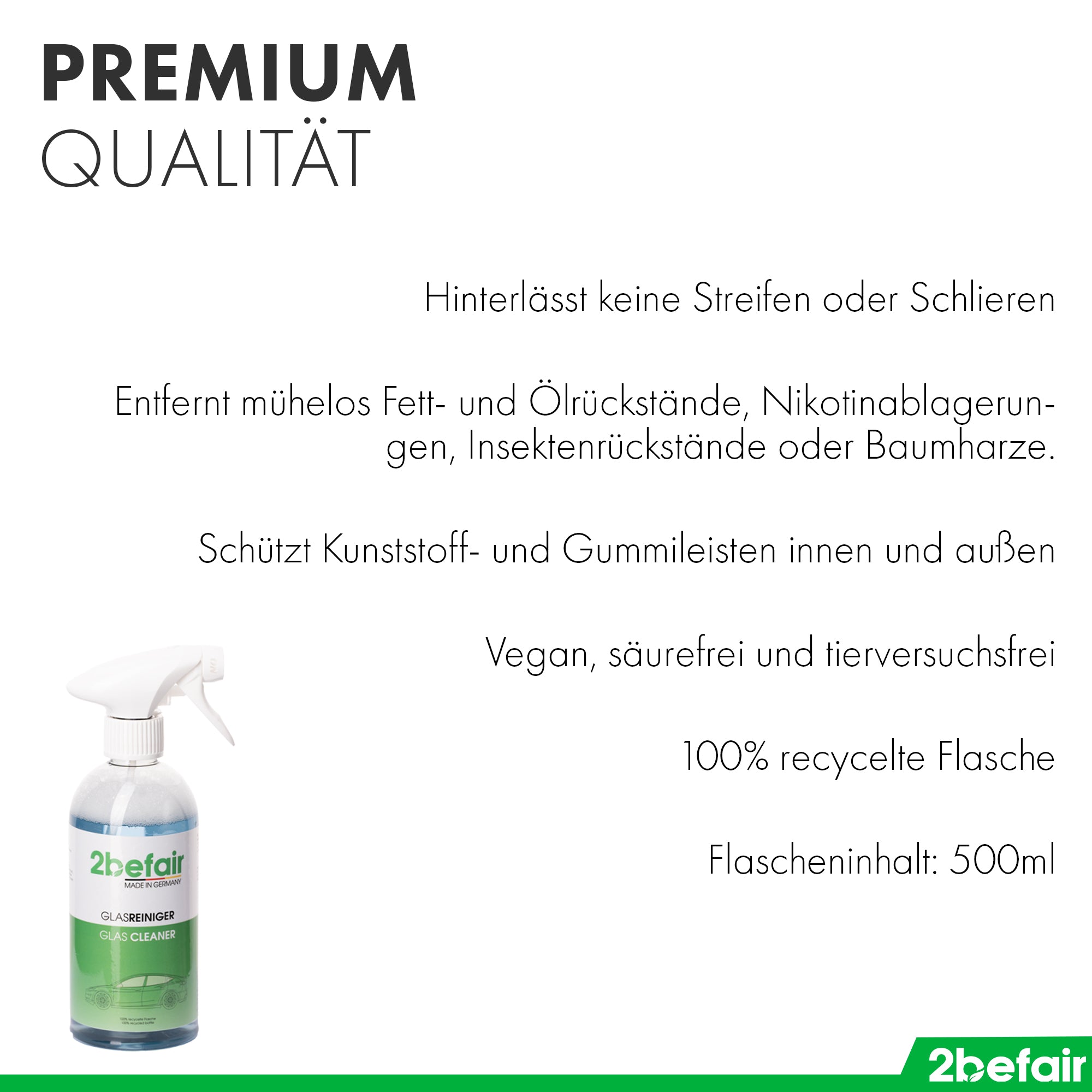 Our 2 -bed glass cleaner was specially developed for car windows and mirror glasses to clean them quickly and strip -free. No matter whether stubborn fat and oil residues or even nicotine deposits, our glass cleaner removes it effortlessly and ensures a clear view.