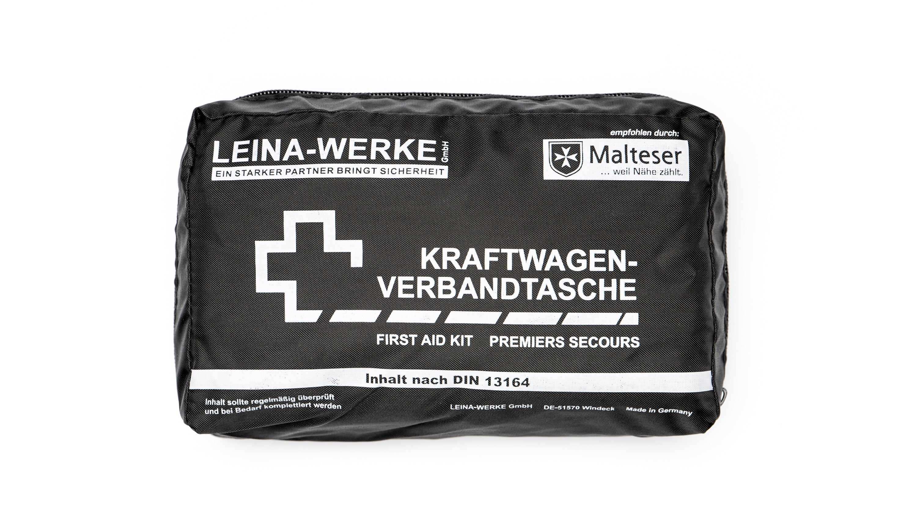 Our vehicle association bag according to DIN 13164 recommended by the Maltese is an indispensable security accessories for every driver. It meets all requirements of DIN 13164 and contains everything that is required for primary care in an emergency. The material bandage pocket is made of robust material and is compact and space -saving. The production takes place in Germany.