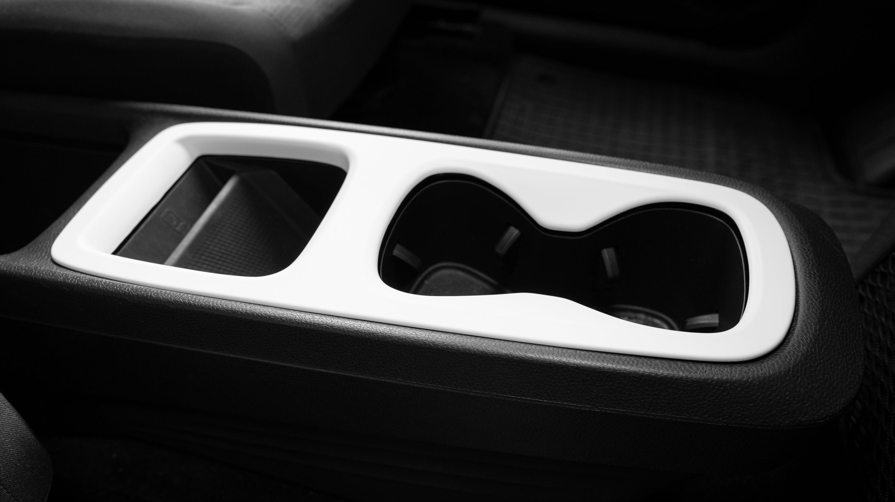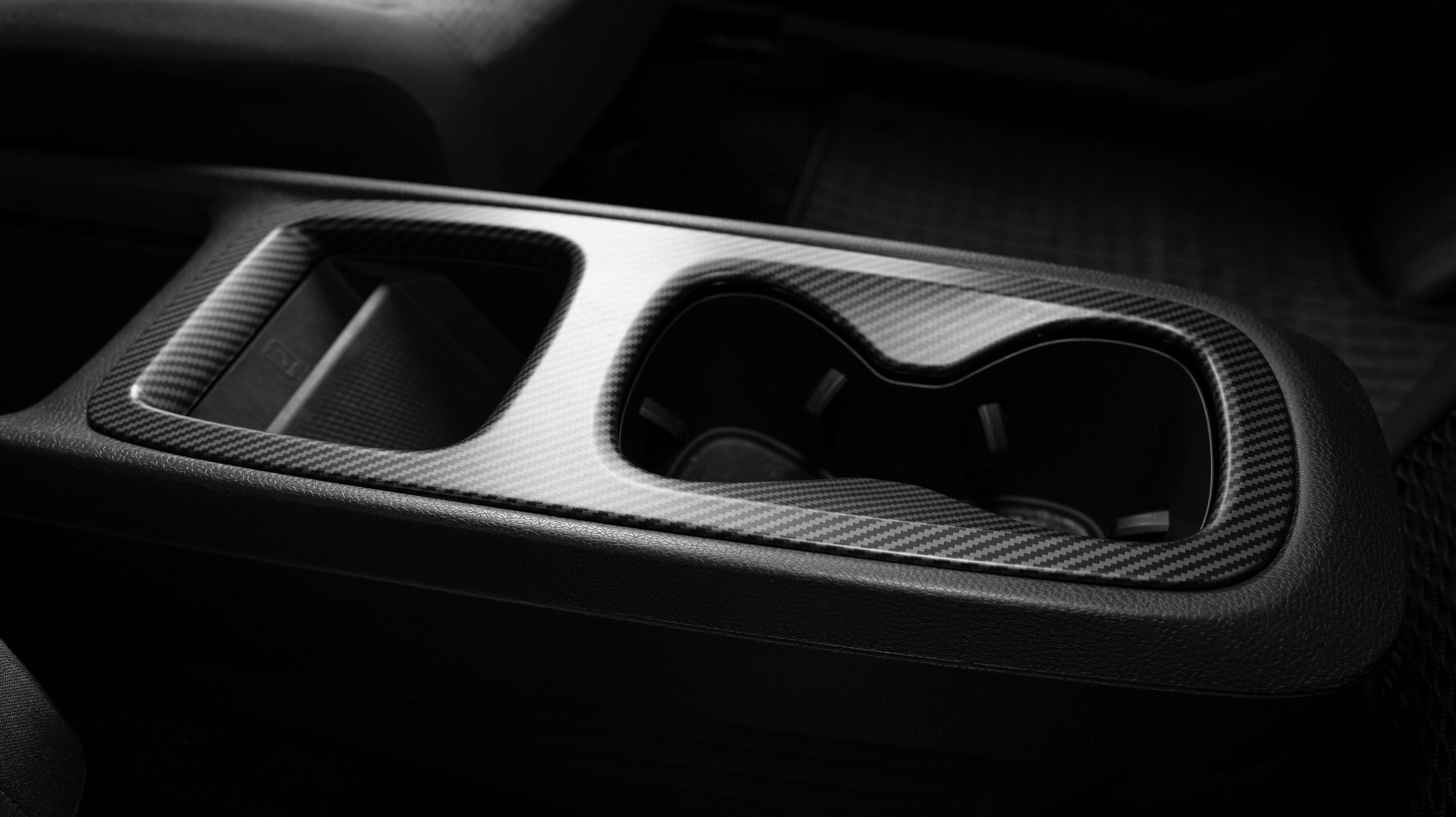 2. Align the center console cover on the edges of the center console. Remove the protective film from the 3M adhesive tape on the back of the center console cover and glue the cover onto the center console.