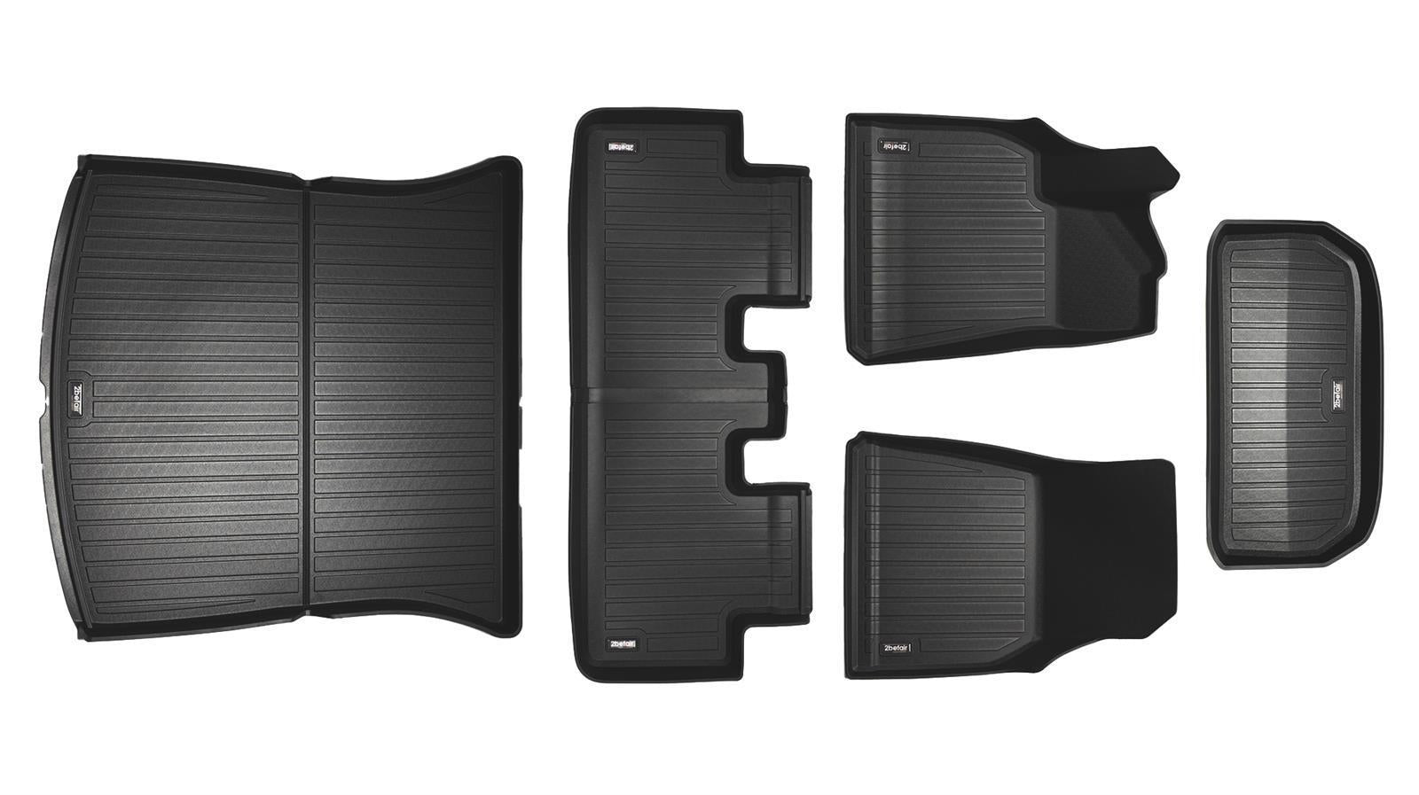 Dieses Gesamtset beinhaltet die Allwettermatten für den vorderen und hinteren Fußraum sowie die Allwettermatten für den Kofferraum und den Frunk (vorderer Kofferraum). Die Allwettermatte für den Kofferraum ist mit einer Knickkante versehen, sodass du bequem auf das Kabelfach unter dem Kofferraum zugreifen kannst. Die Fußmatte für die Rücksitze besteht aus zwei Teilen, die in der Mitte nahtlos übereinander gelegt werden und wasserdicht abschließen. Dadurch lassen sie sich leichter ins Auto legen und beim Herausnehmen fällt kein Schmutz in den Fußraum. Die Kabelfachmatte ist in diesem Set nicht enthalten. Die Matten für die Rücksitze und für den Kofferraum hinten passen nicht beim 7-Sitzer Model Y.